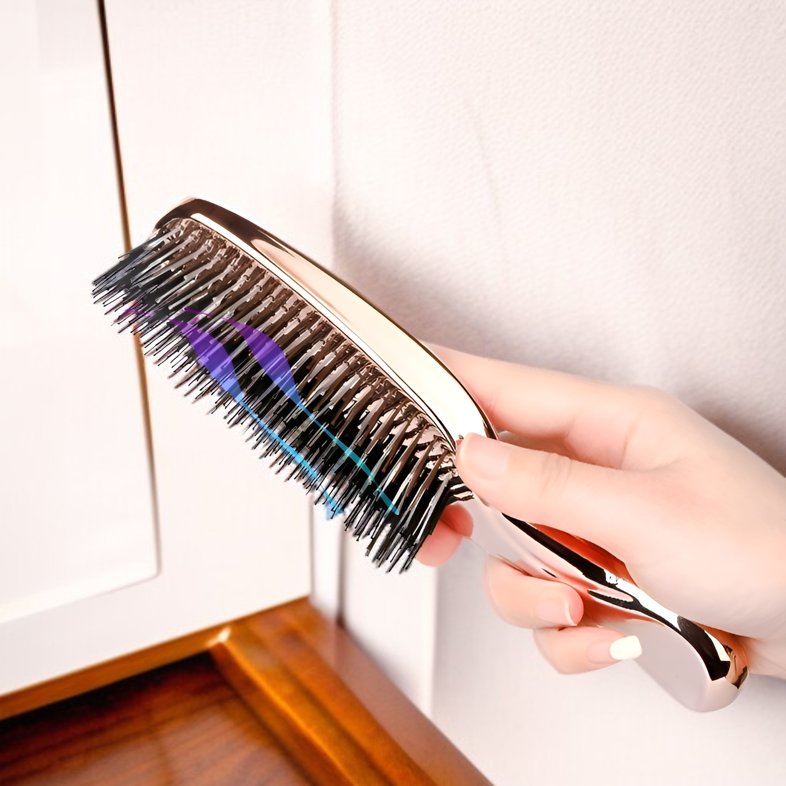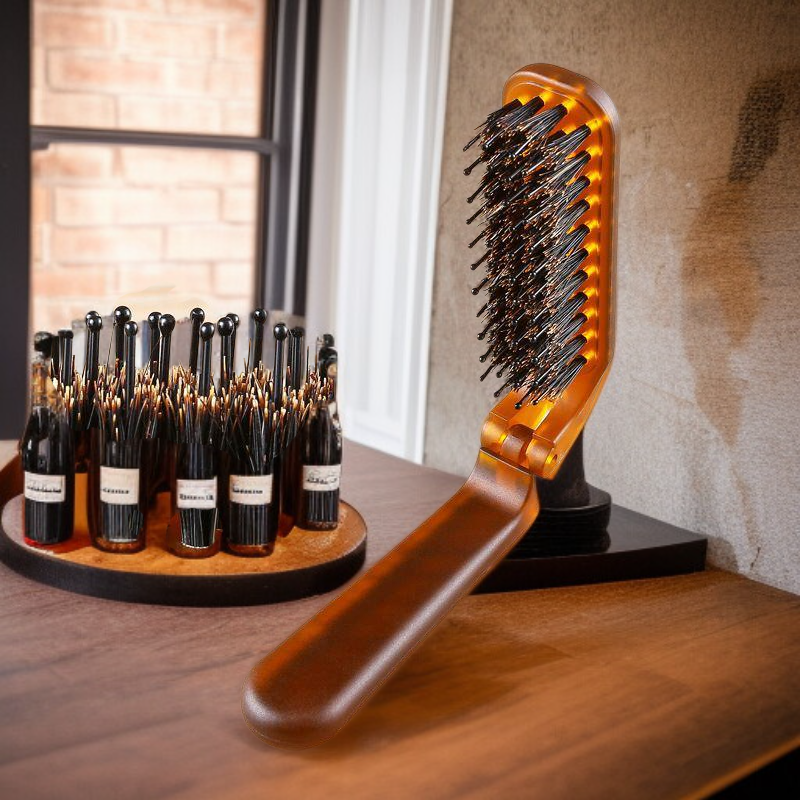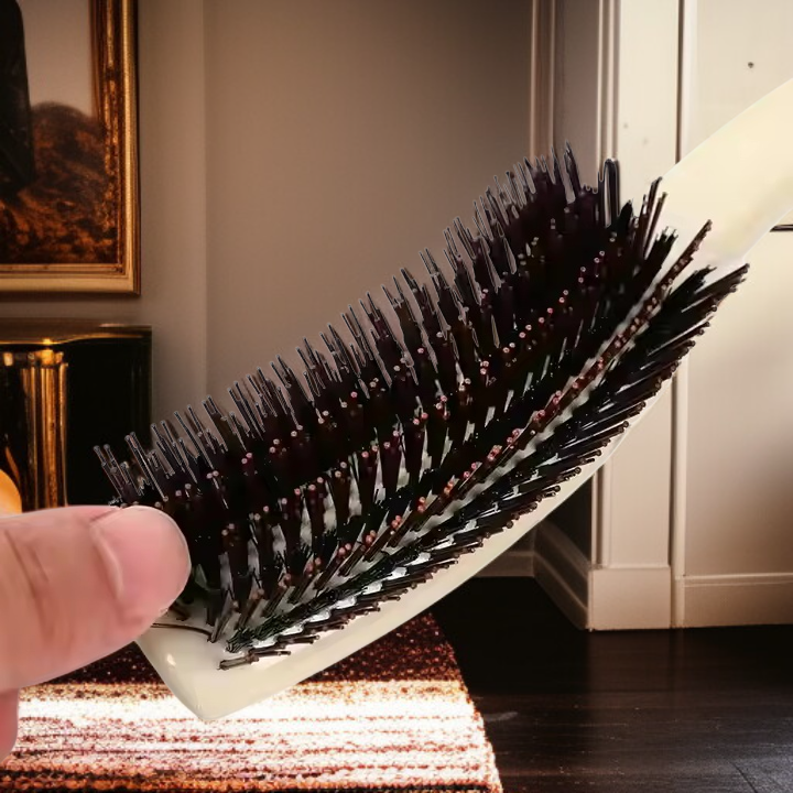 Lockenstyling-Bürste aus Wildschweinborsten, ergonomische Kopfmassagebürste, 9-reihiger Volumenkamm