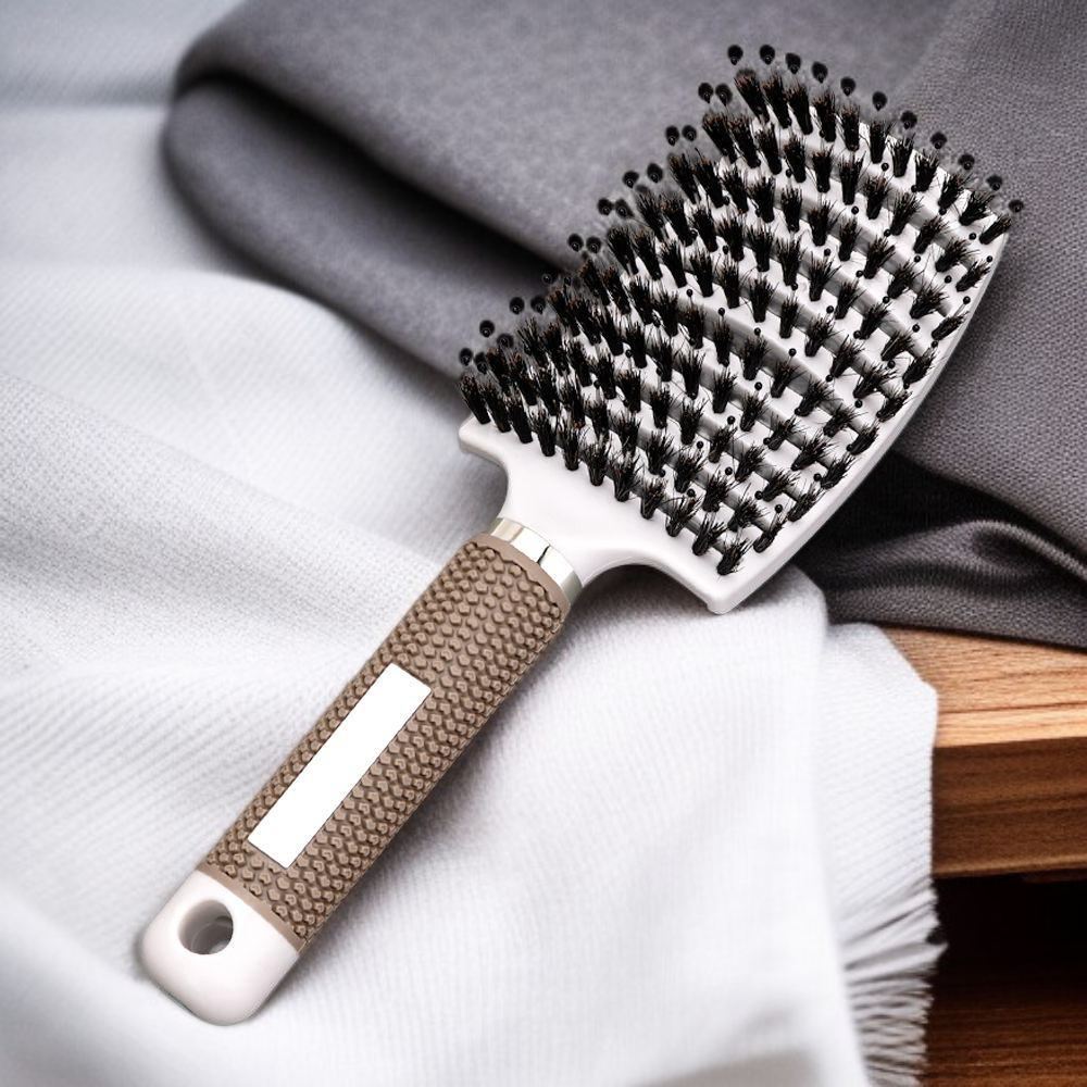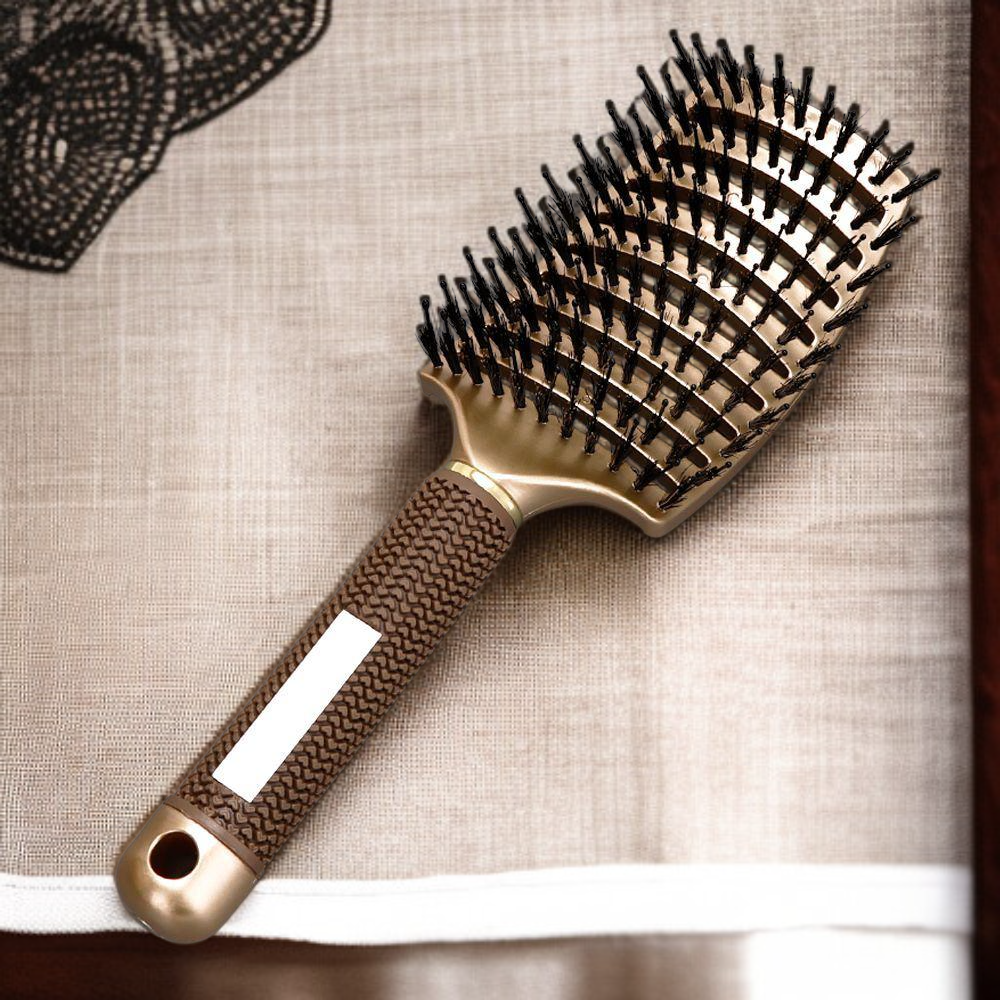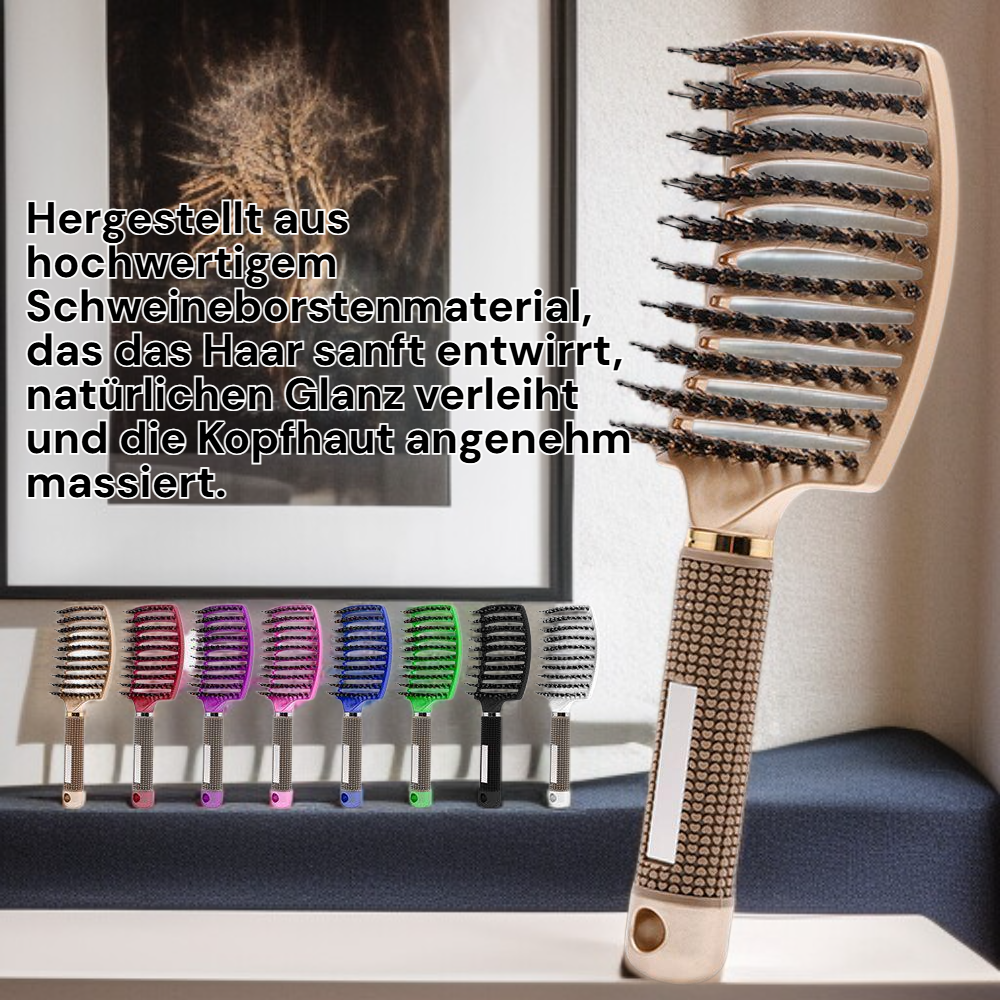 ● Hergestellt aus hochwertigem Schweineborstenmaterial, das das Haar sanft entwirrt, natürlichen Glanz verleiht und die Kopfhaut angenehm massiert.