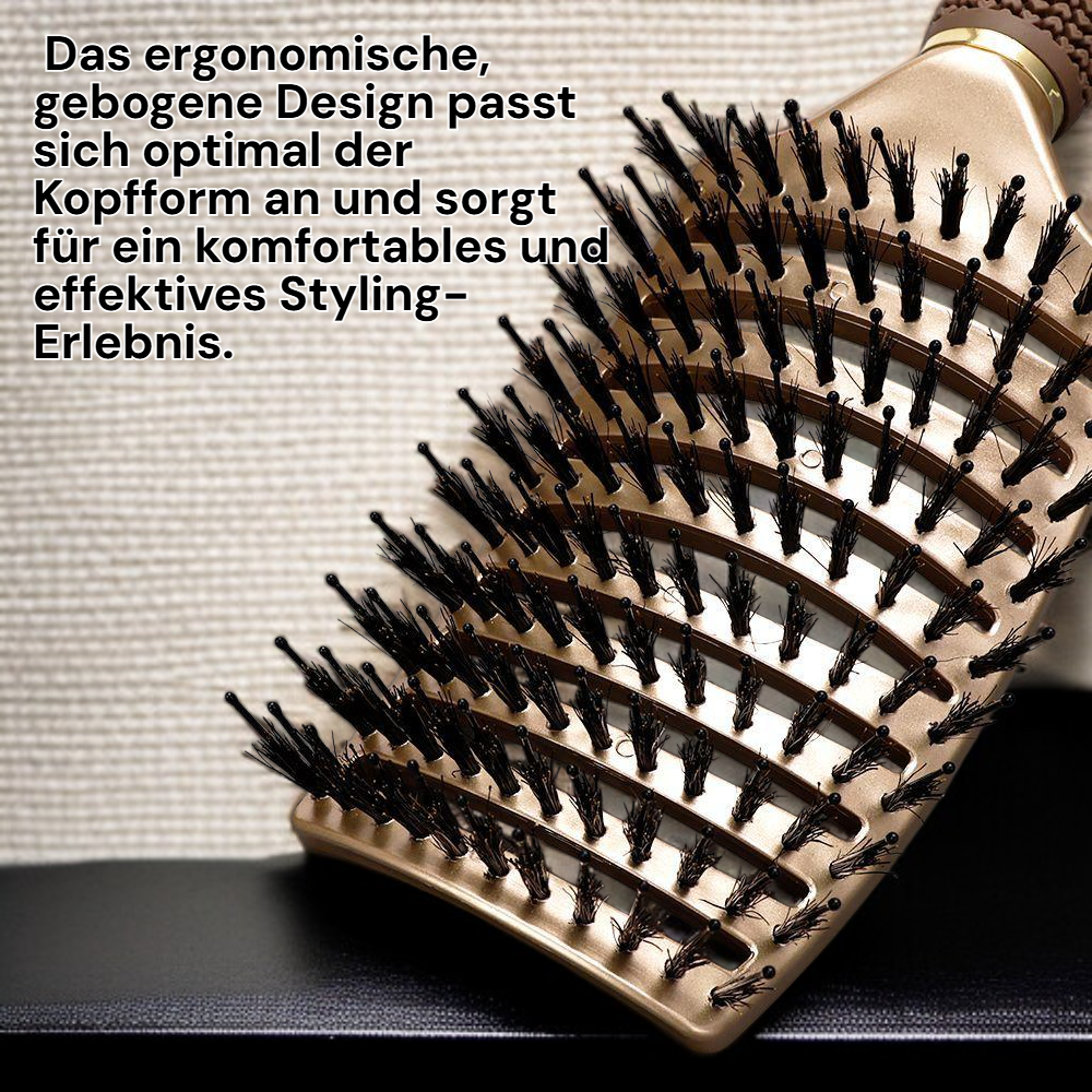 ● Das ergonomische, gebogene Design passt sich optimal der Kopfform an und sorgt für ein komfortables und effektives Styling-Erlebnis.