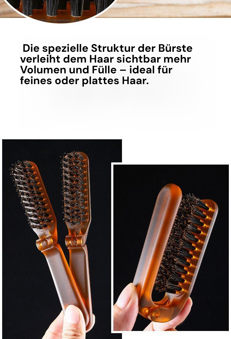 ● Hergestellt aus hochwertigen Wildschweinborsten, entfernt effektiv überschüssiges Öl und sorgt für ein natürlich glänzendes, gesundes Haar. ● Nahtloses Design verhindert das Ziepen und Haarbruch, sodass das Kämmen besonders sanft und angenehm für Ihre Kopfhaut ist. ● Die spezielle Struktur der Bürste verleiht dem Haar sichtbar mehr Volumen und Fülle – ideal für feines oder plattes Haar. ● Perfekt für die tägliche Pflege: Massiert die Kopfhaut, fördert die Durchblutung und unterstützt das Haarwachstum auf natürliche Weise. ● Wasserfest und ideal für das Badezimmer – langlebig, pflegeleicht und immer einsatzbereit für Ihr Styling.